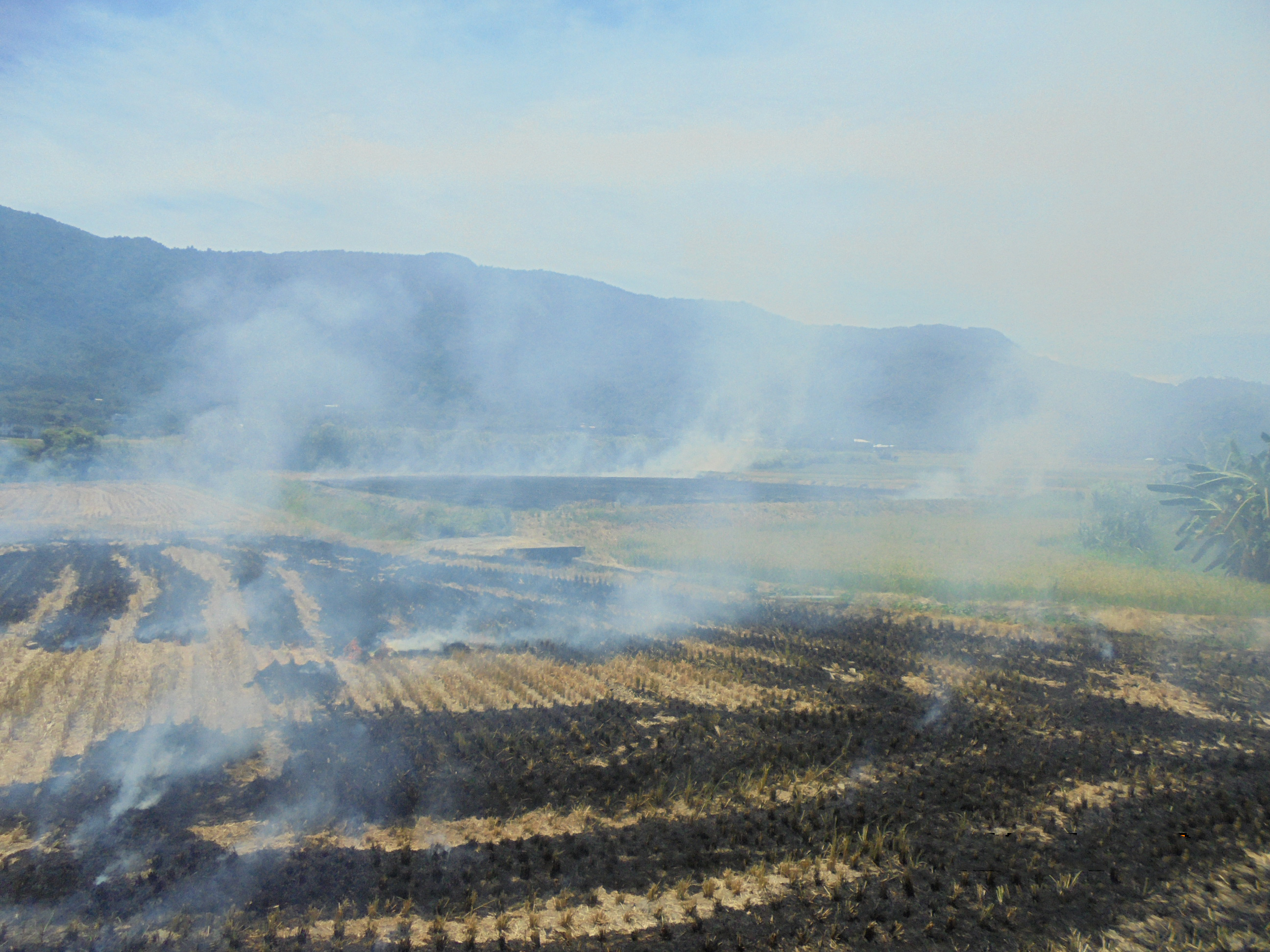每逢六、七月正值一期稻作收割時期,由於一、二期稻作耕作期間銜接較短,稻稈若未翻耕完全腐化,會影響下一期秧苗發育,因此部分民眾往往會選擇燃燒處理,導致第一期收割後露天燃燒問題嚴重。露天燃燒稻草的影響不容小覷,燃燒稻草不僅會釋放大量二氧化碳及細懸浮微粒(PM2.5)至環境中,燃燒過程所產生的濃煙,更可能會導致空氣品質惡化、危害民眾健康,甚至影響行車視線,危及公共安全。