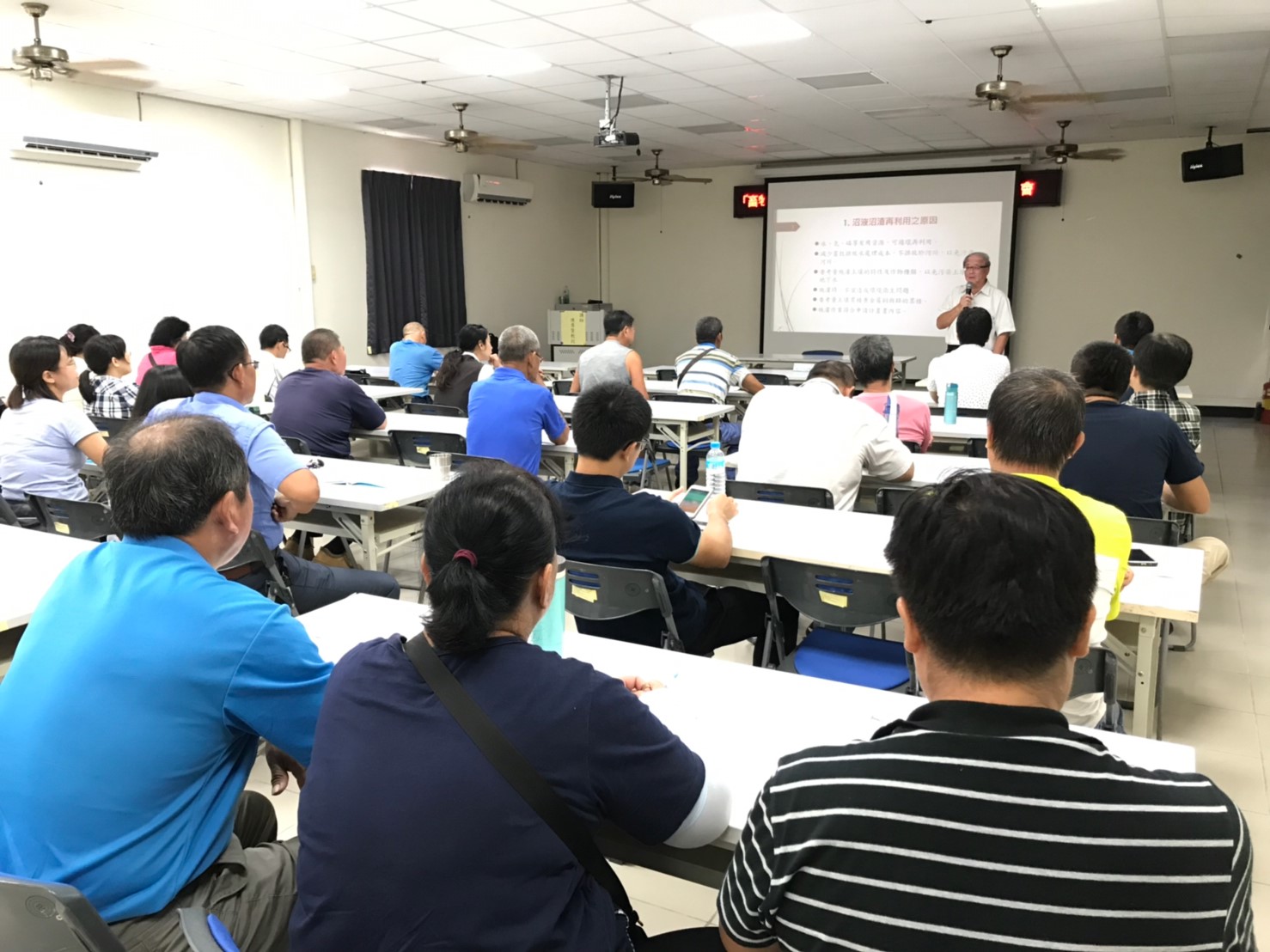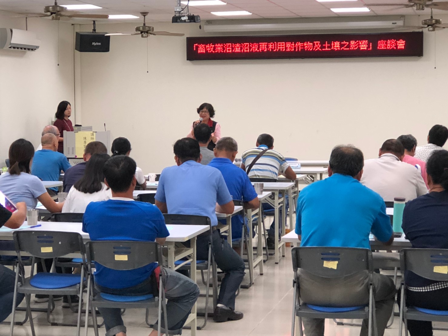 本次會議會中陳尊賢教授除講授沼渣沼液農地之媒合推動與對不同農作物與土壤之指引並介紹沼液沼渣施用於農田土壤的法規管理與施用相關技術等專業知識,針對畜牧廢水處理並特別介紹國外施灌所使用的相關技術,藉由國外成功案例分享,使農民更加瞭解畜牧資源再利用的效益,會中獲與會人員熱烈迴響,預期將有更多農民投入本項政策。