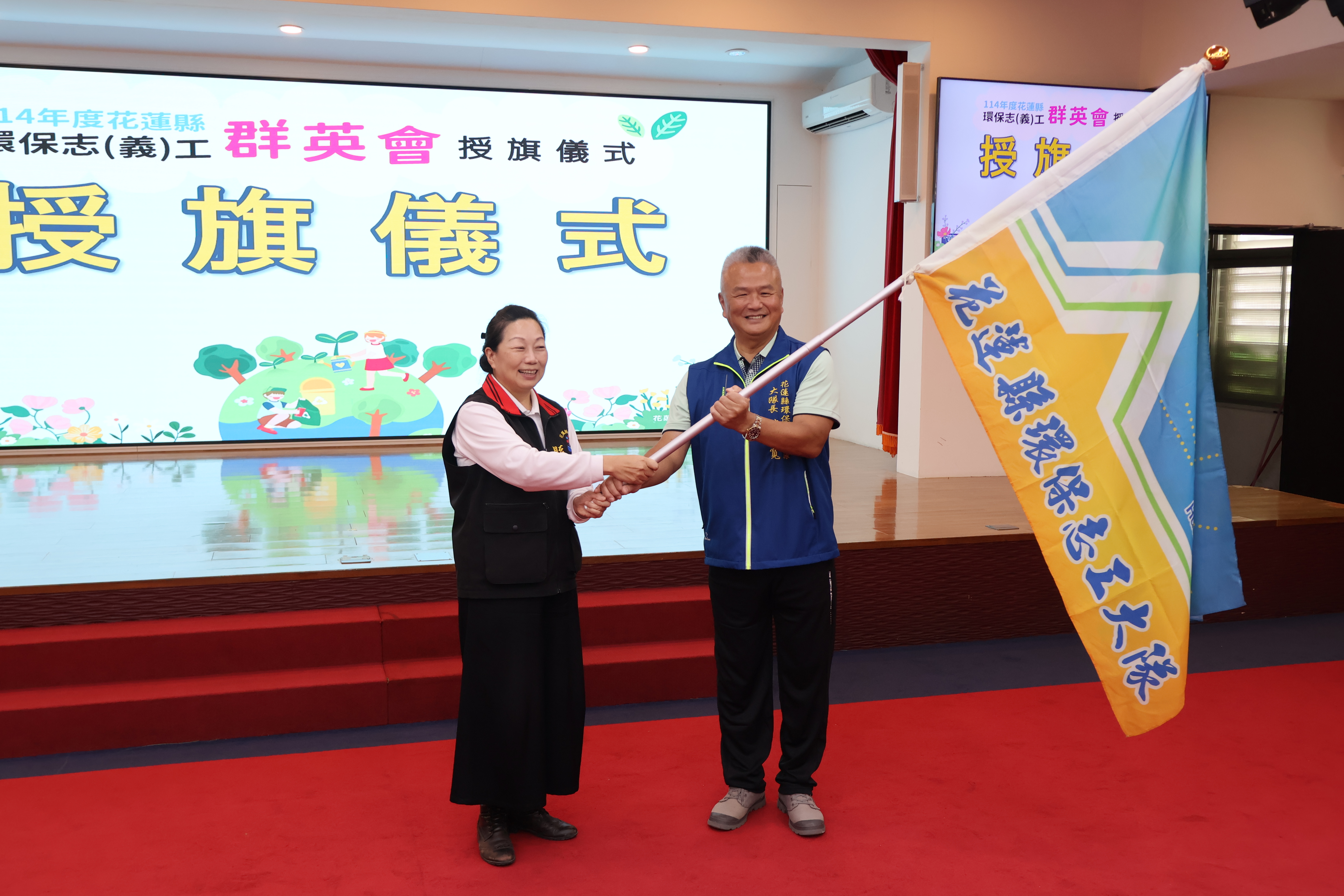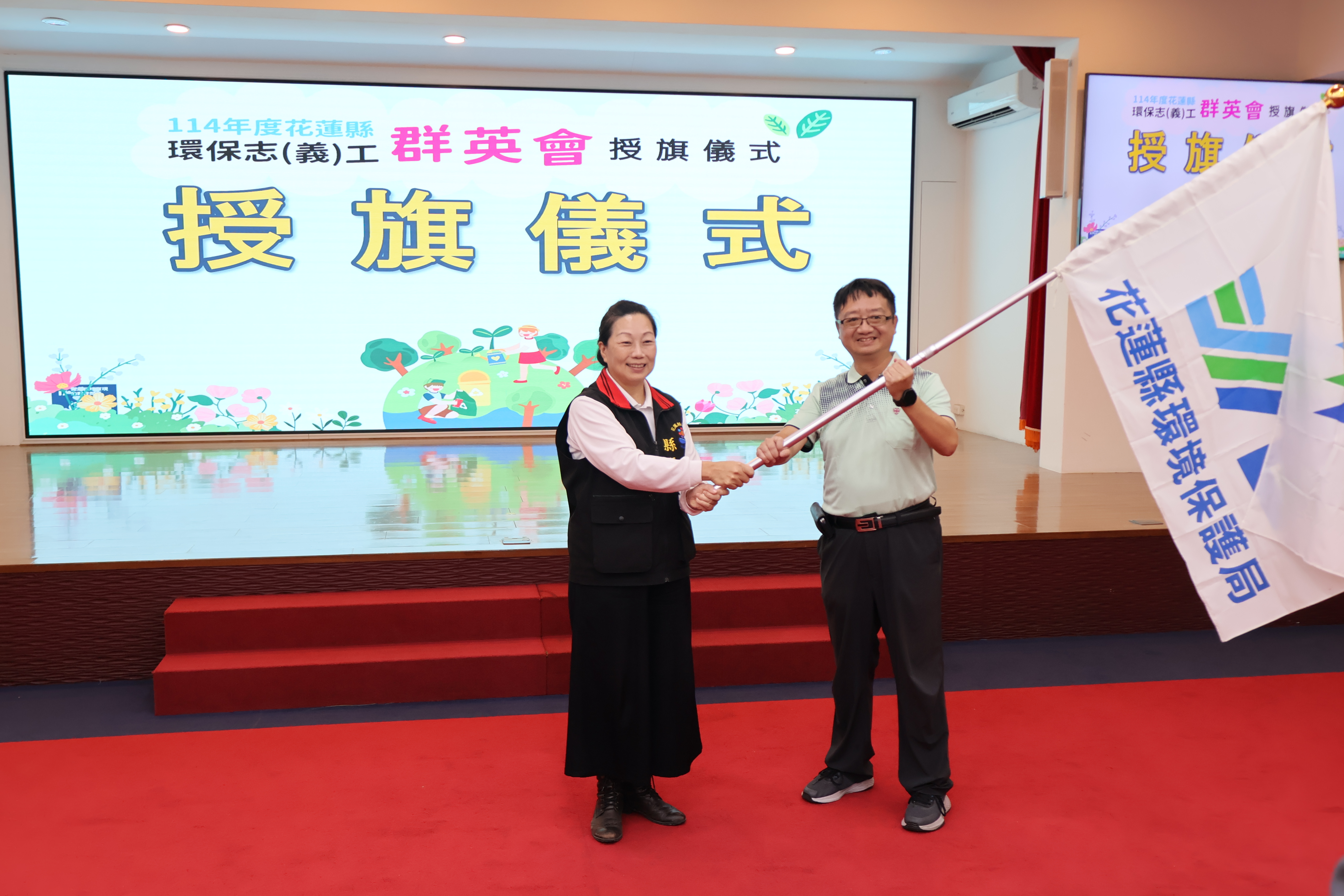 「114年全國環保志(義)工群英會」將於11月1日在雲林縣立體育館登場,花蓮縣環保志工代表隊將出征全國賽。花蓮縣政府特於10月28日隆重舉行授旗儀式,由花蓮縣長徐榛蔚親自勉勵代表隊伍,期許花蓮縣環保志工代表隊以花蓮人特有的韌性與永續信念,站上全國舞台,展現花蓮的環保實力與永續行動力!