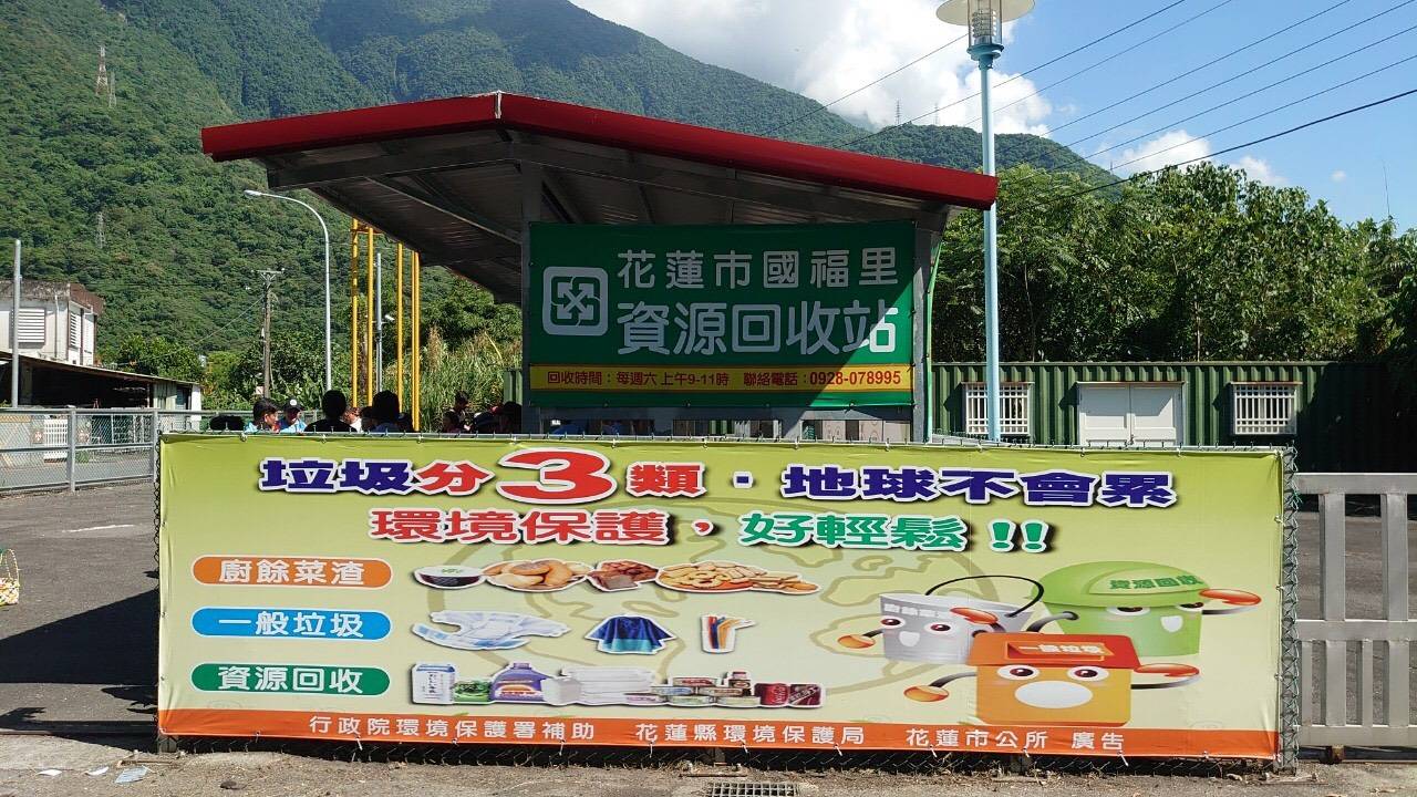 而109年度共有三處申請設置村里資收站,分別花蓮市國光里、國福里及豐濱鄉磯崎村,而今日國福里完成設置作業並舉辦開幕典禮,邀請各位鄉親拿資源回收物進行民生用品兌換作業,而未來也將持續進行資源回收工作,鼓勵民眾於第一線的村里社區做好回收分類,將家中資源回收物分類整理後,送往鄰近站上秤重回收,藉由點數兌換機制作為獎勵,可換取環保洗碗精、洗手乳等民生用品,作為養成民眾做好回收分類的誘因。