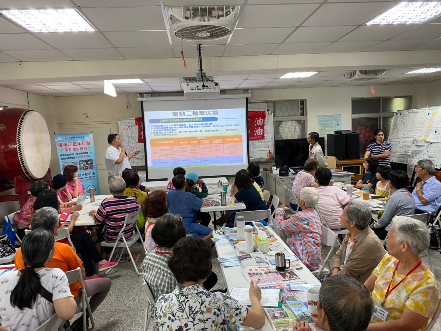 花蓮縣環境保護局為宣導淘汰一至四期老舊車輛換購電動機車或七期低污染燃油機車補助、倡導車輛停車怠速熄火及機車定檢政策,加強民眾及車主對於淘汰老舊機車換購電動機車或低污染機車補助辦法及車輛反怠速及機車定檢相關管制措施的瞭解,109年7月27日(星期一)上午在花蓮市主商里聯合辦公處辦理淘汰老舊車輛換購電動機車或七期燃油機車補助暨停車反怠速熄火及機車定檢宣導說明會,由花蓮縣環境保護局說明機車定檢的重要性、老舊機車的汰舊補助政策以及車輛怠速行為所帶來的危害。