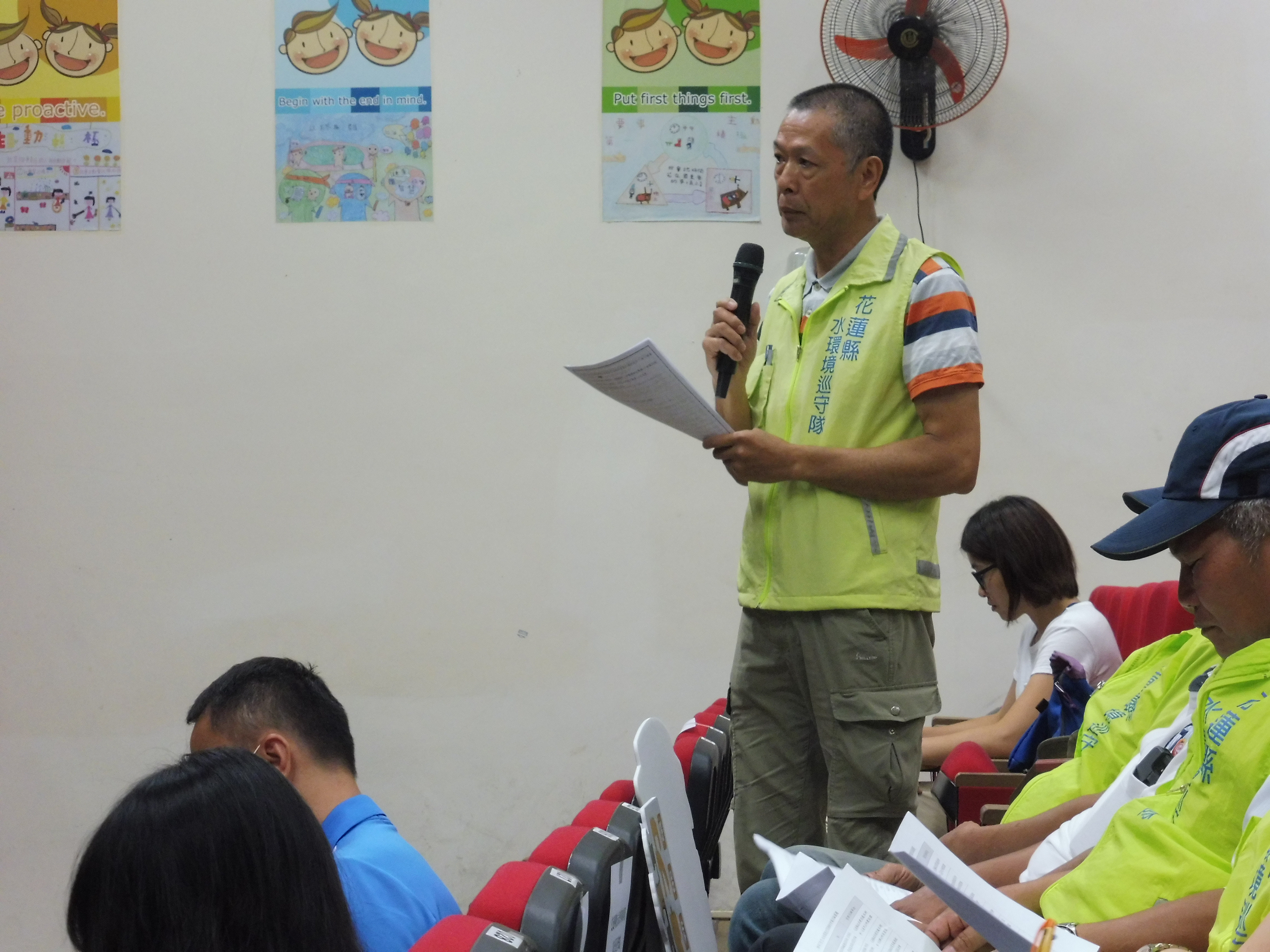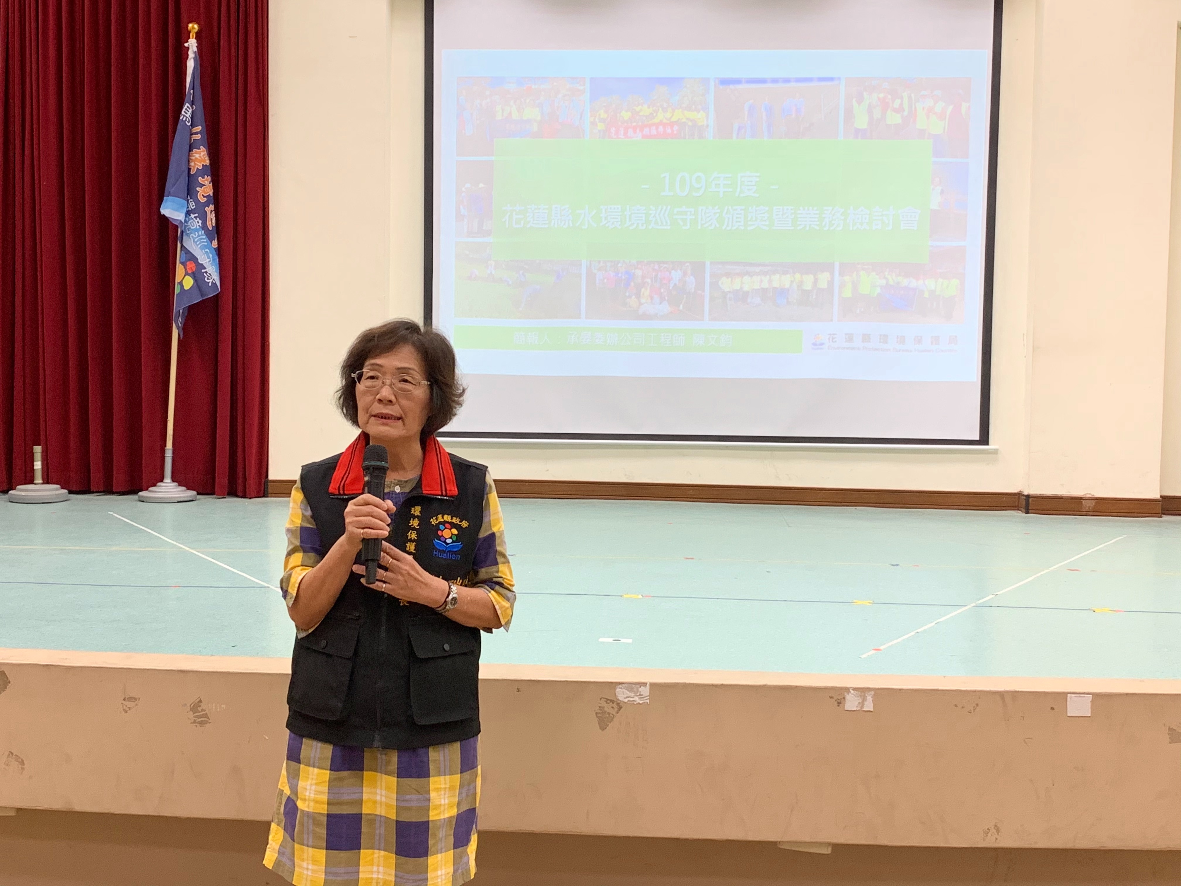 109年度花蓮縣水環境巡守隊業務工作檢討會,於本(7)月21日上午10點10分於花蓮市明恥國小階梯教室辦理,與會人員共計48人次,除召集國立台灣大學水環境管理與應用技術研究室、經濟部水利署第九河川局規劃課及轄內水環境巡守隊等水環境相關單位參與外,更邀請環保署儲雯媂簡任技正蒞會指導,透過頒發108年度全國特優級水環境巡守隊及授旗新進隊伍方式,激勵本縣水巡隊員士氣,其中透過面對面意見交流方式,讓公部門剖析巡守隊於第一線所遭遇之環境議題的根本難題,共商有效解決之道以達朝向源頭宣導管理的方向推展。