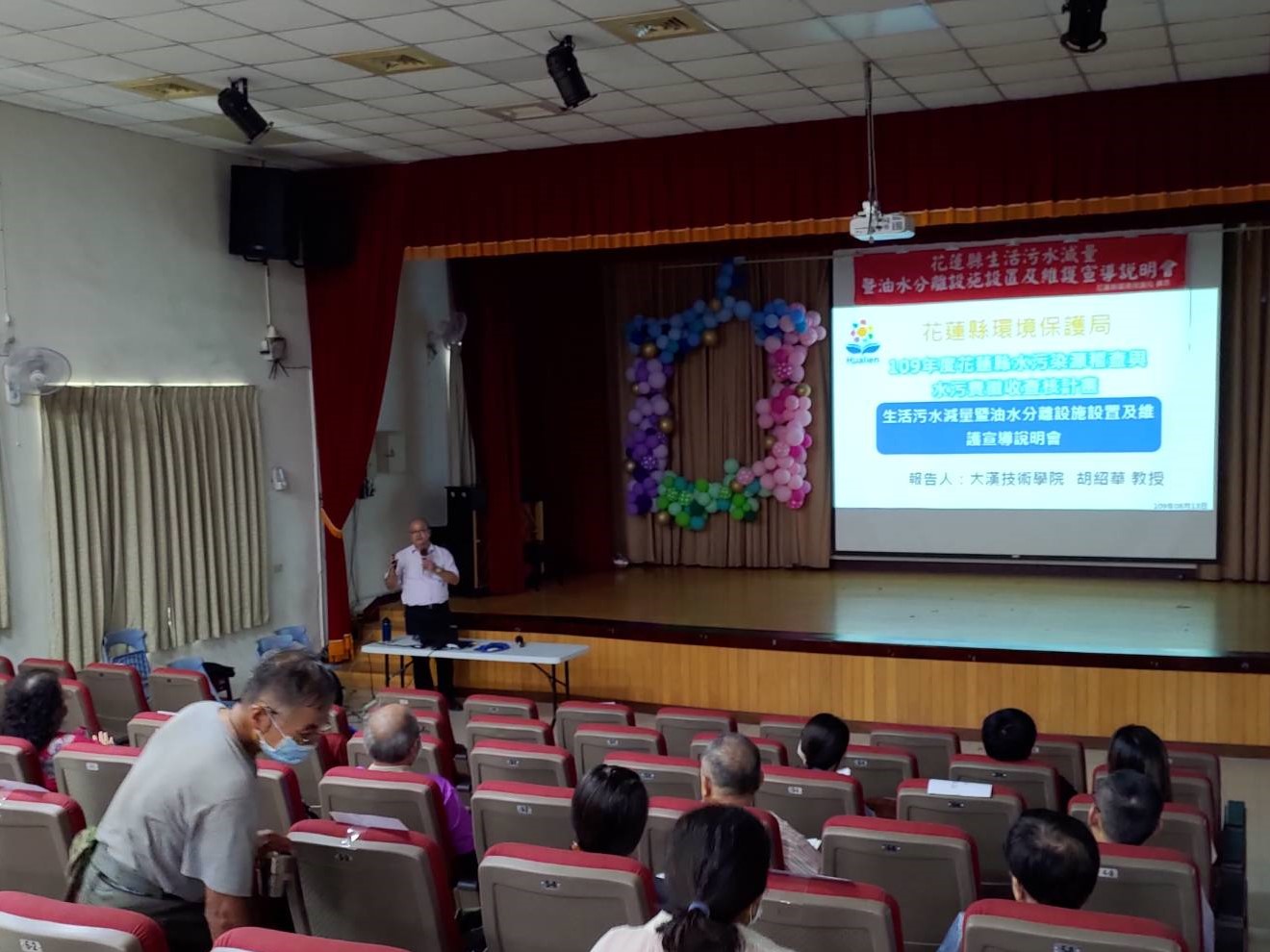 花蓮縣環境保護局於日前(8月13日)假花蓮縣鑄強國民小學舉辦3場生活污水減量宣導說明會,與會人員為一般民眾、洗衣業者、餐飲業者等,活動現場邀請大漢技術學院 胡紹華博士,針對生活污水減量暨油水分離設施設置及維護加以宣導,並且也宣導民眾使用無磷洗衣精減少水質優養化及總磷產生的目標。