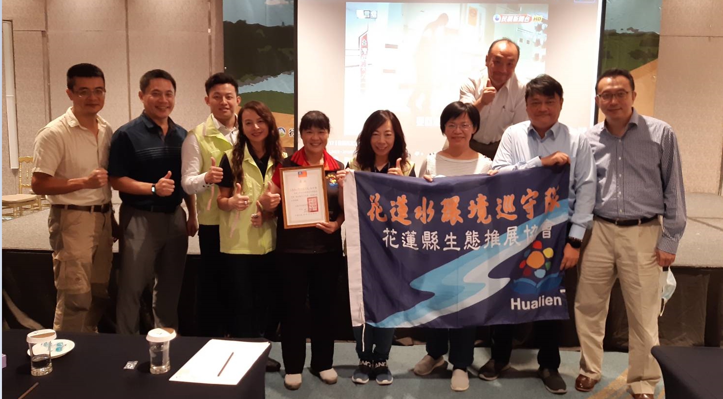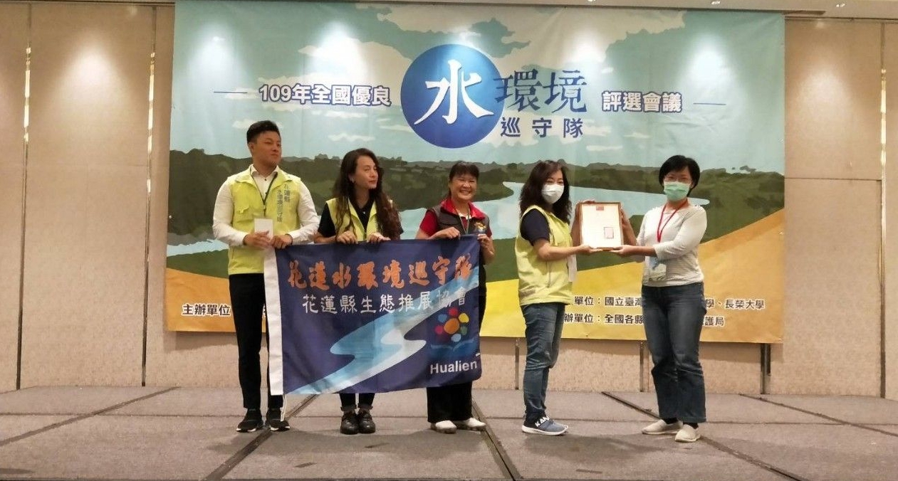 花蓮縣生態推展協會代表花蓮水環境巡守隊參選行政院環境保護署所舉辦109年度全國優良水環境巡守隊評選會議,榮獲全國第一「最佳觀眾人氣獎」,並由環保署儲雯媂簡任技正頒發獎狀,以資鼓勵。
