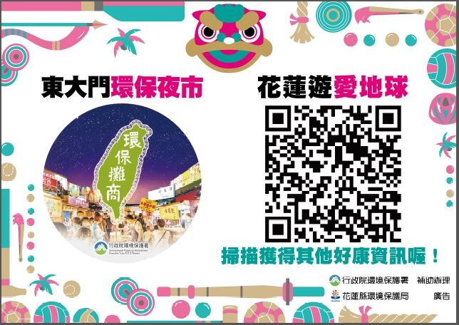 另外,今年雲朗觀光太魯閣峽谷馬拉松期間,東大門夜市將配合本次活動辦理餐具借用相關活動,民眾如果忘記帶環保餐具及環保杯,只要在11月7至8日期間,至東大門夜市找到花蓮縣環保局的借用攤位,填寫資料及支付100元押金後即可租借,押金將於歸還餐具時退回。民眾只要到東大門夜市時帶著環保餐具並到貼有環保攤商標章的商家消費,即可享有不同的優惠,從減價到加量,應有盡有,攤商名單及優惠措施可以至現場掃描標章下方的QR CODE,裡面不僅有環保攤商的名單及位置,更包含環保旅店及抽獎等等豐富的資訊。