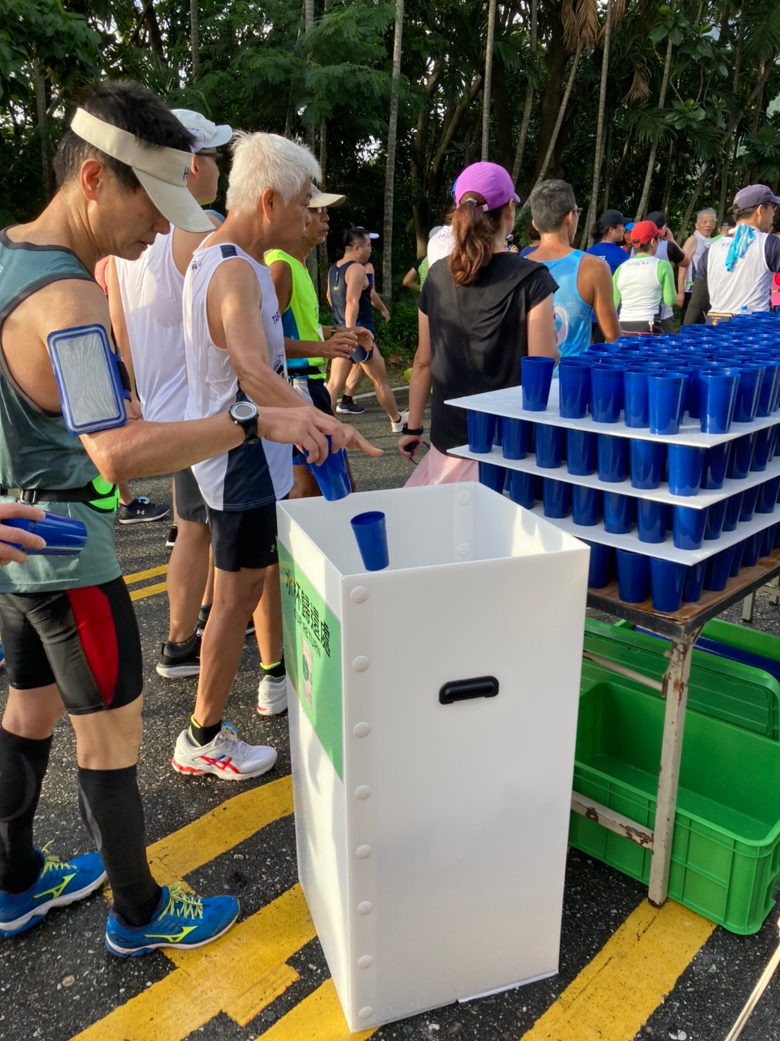 跑者可自帶水杯,也可於開跑後第一個補水站領取環保水杯,可以在任一水站歸還,也可以跑完全程後,於終點水站將水杯放在歸還處回收。