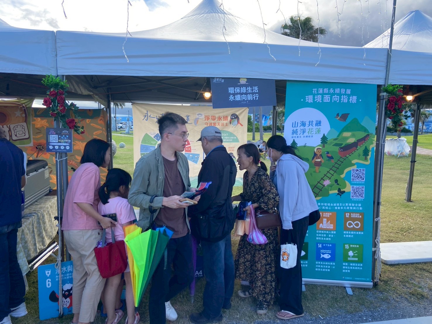 為讓永續理念深入民間,花蓮縣環保局推動一系列創新體驗活動。「獵饗之道:永續部落體驗」結合野炊、編織、阿美族文化導覽與竹筒飯DIY,傳遞「取之有道、用之有度」的傳統智慧,讓參與者在文化交流中深化對自然資源的尊重。後續的農場體驗活動,則引導民眾認識濕地保育、友善農法與食物里程等議題,透過實作學習永續耕作、土壤健康維護與棲地營造,並結合食農教育推廣公平交易與責任消費。後續也將陸續舉辦創新宣導活動,歡迎所有民眾一同來參與。此外,更將永續理念融入大型藝文活動,於「星光音樂會」現場設置「環保綠生活・永續向前行」互動攤位,以遊戲方式引導民眾實踐節水減塑、綠色能源與防災參與,讓SDGs從抽象目標轉化為日常行動。