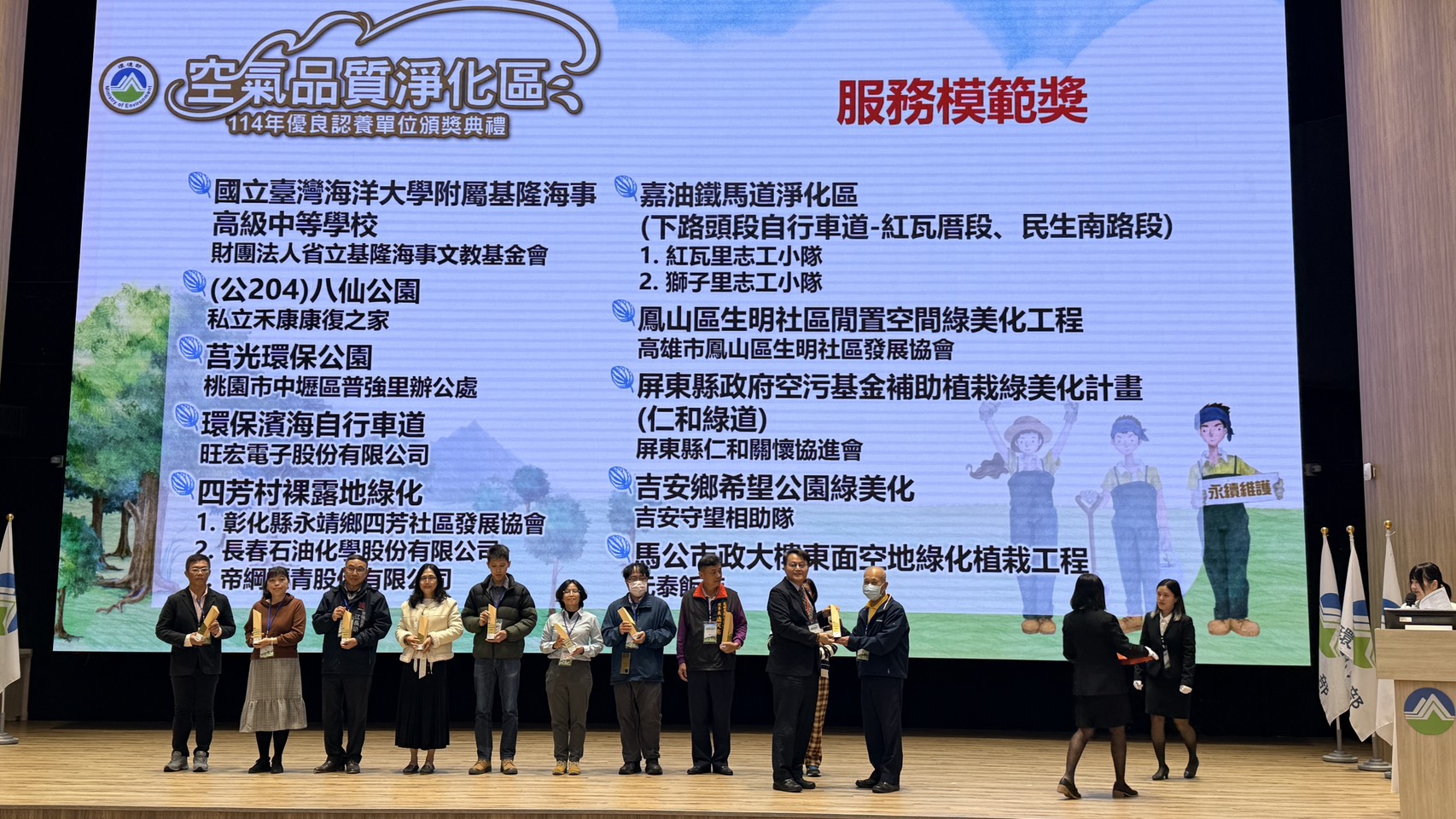 花蓮縣的空氣品質是全國最好的縣市,為了保持良好的空氣品質花蓮縣環境保護局積極邀請縣內企業、社區發展協會、守望相助隊、學校及志工團體等單位一同參與認養本縣空氣品質淨化區,日前提報守望相助隊參加環境部「114年空品淨化區優良認養單位甄選」。12月26日於環境部舉辦「114年度空氣品質淨化區優良認養單位頒獎典禮」,花蓮縣吉安守望相助隊榮獲服務模範獎,這是本縣連續7年獲得此殊榮。